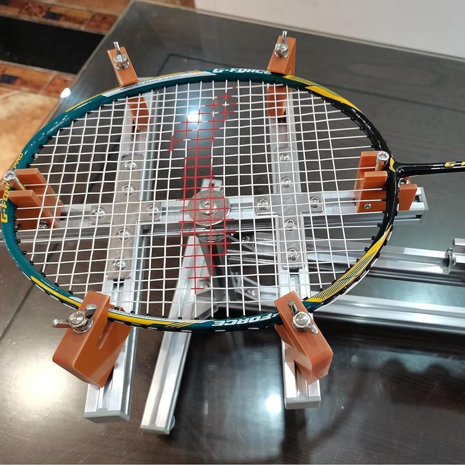Description: 1. This is innovative badminton racket stringing machine made of aluminum profile. 2. Suitable for amateur badminton enthusiasts, as well as middle and high school badminton enthusiasts or people engaged in the amateur stringing business. 3. Its very cost-effective and can thread 20-32 pounds perfectly. Feature: 1.It has a 6-point fixed badminton racket head, so that the racket will not be deformed during the stringing process. 2. It comes with a manual string puller and a pointer-type tension meter, which shows the tension of the string in real time to ensure accurate string pulling. Moreover, this machine does not require periodic calibration. 3. The stringing machine is made of high-strength aluminum alloy and phenolic resin material, light weight and high strength, the seller used tennis racket string to actually test pulling the string to 70 pounds without deformation, for badminton racket pulling is a breeze. 4. The machine is equipped with a "high pound protector", which can best protect the racket in the high poundage threading without deformation. Package included: 1 x Badminton Racket Stringing Machine 1 x Accessories