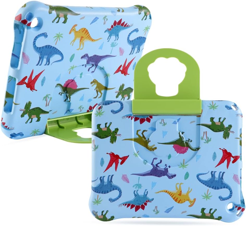 1. The tablet case with cute dinosaur and princess elements is compatible with Kindle Fire HD 8/HD 8 Plus 8 inch 10th gen and 12th gen 2020 2022 2024 model. Providing added peace of mind for parents and guardians concerned about their children's devices. 2. Lightweight EVA Material Perfect for Children: Prioritizing the healthy growth of children, we've chosen a safe, non-toxic, odorless, high-quality EVA foam material. Its lightweight design makes it easy for kids to carry, and the Kid Pro full-cover feature ensures durability, making it resistant to wear and easy to clean. 3. Colorful Cartoon Patterns Sure to Delight Kids: Unlike plain single-color cases, our cases incorporate beloved elements like dinosaurs and princesses, in vibrant colors that kids adore. If your child tires of monotonous hues, give our exclusive, uniquely styled, colorful dinosaur and princess case a try! 4. Featuring a Stand and Carry Handle: Our case comes equipped with a foldable, adjustable-angle stand that doesn't take up space. When opened to 180 degrees, it transforms into a convenient handle, making it easy for children to carry outdoors, while traveling, or to school. This is a child-friendly companion for learning, reading, playing, watching videos, and more. 5. A Great Gift for Kids: Every child owns a tablet, and our case, which combines protection and visual appeal, is an excellent choice. We're not just safeguarding their tablets; we're also teaching kids the value of caring for and protecting their belongings. It's suitable for various occasions, including birthdays, Christmas, Thanksgiving, New Year's, and more.